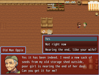 A short game made in rpg maker where you walk around and help people.